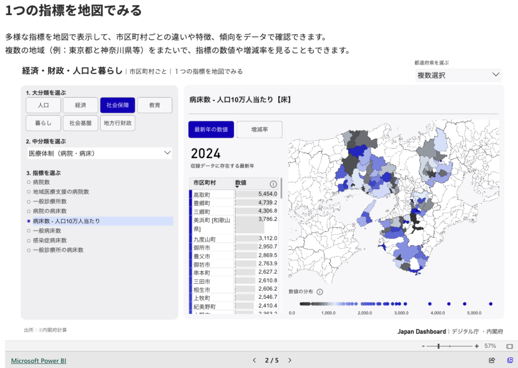 デジタル庁の『Japan Dashboard』なら都道府県ごと市区町村ごとで気になる指標がチェックできます。